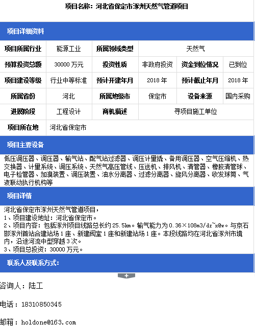 項(xiàng)目名稱:河北省保定市涿州天然氣管道項(xiàng)目