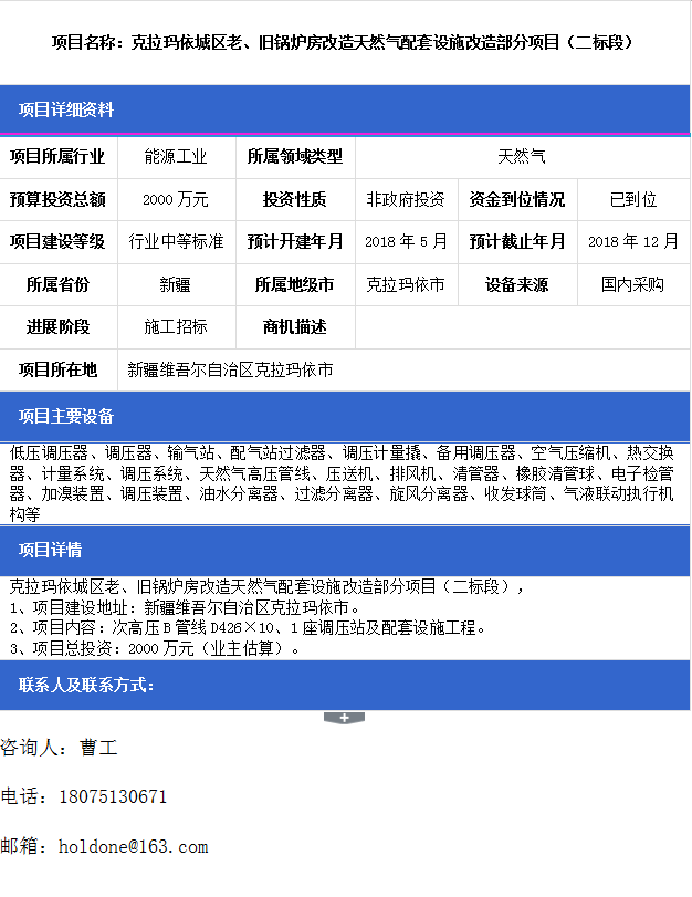 →項目名稱:克拉瑪依城區老、舊鍋爐房改造天然氣配套設施改造部分項目(二標段)