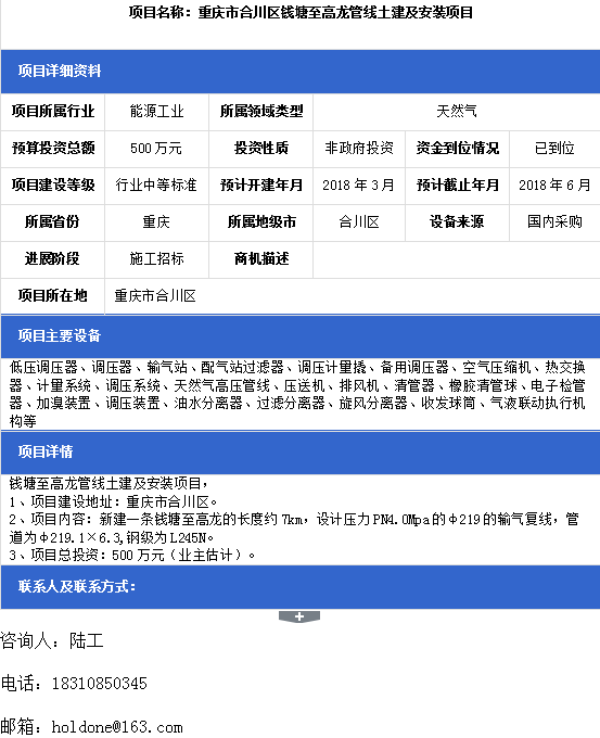 →項目名稱:重慶市合川區錢塘至高龍管線土建及安裝項目