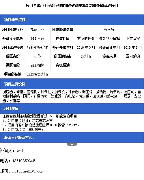 →項目名稱:江蘇省蘇州市鋪設螺旋埋弧焊D508鋼管建設項目
