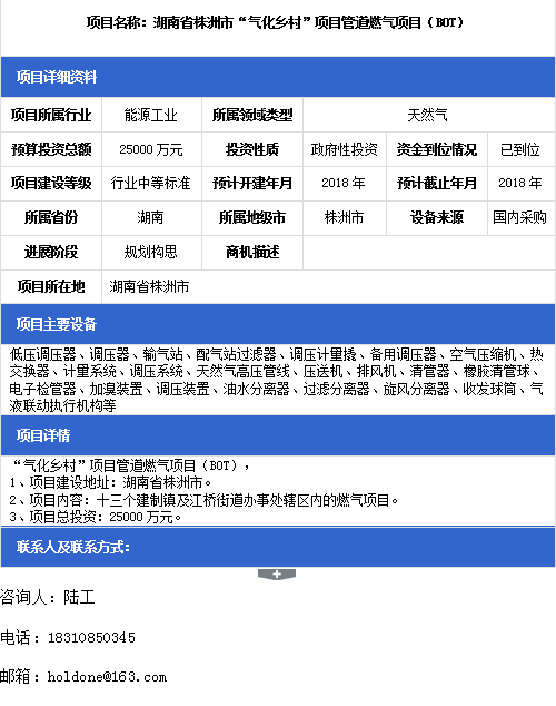 項目名稱:湖南省株洲市“氣化鄉村”項目管道燃氣項目(BOT)