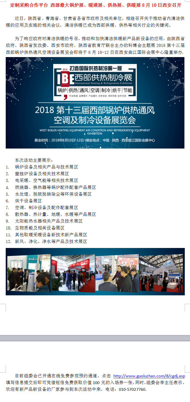 →定制采購合作平臺 西部最大鍋爐展、暖通展、供熱展、供暖展8月10日西安召開