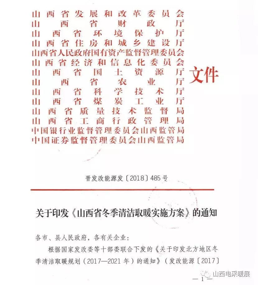 8月15日,山西省發改委、財政廳、環保廳等14部門聯合印發《山西省冬季清潔取暖實施方案》,《方案》明確,全省清潔取暖面積約11.8億平方米,到2021年清潔取暖率達到75%左右,替代散燒煤600萬噸。其中,電供暖、氣供暖按照“宜電則電、宜氣則氣”原則,到2021年,電供暖和天然氣供暖面積達到24447萬平方米,占比20.7%。
